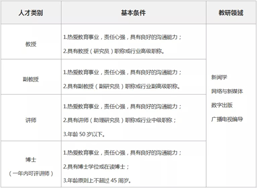 國際一流水準與影響力的專家、資深教授、行業(yè)專業(yè)、專業(yè)帶頭人、青年教師共同構(gòu)成了文化傳媒學(xué)院專業(yè)素養(yǎng)與國際視野兼具的師資團隊,共有教職工70人。現(xiàn)誠摯邀請熱愛教育事業(yè),具備從事高等學(xué)校教學(xué)和科學(xué)研究能力的人才加入文化傳媒學(xué)院大家庭,成為中國應(yīng)用傳播實踐教學(xué)的引領(lǐng)者。