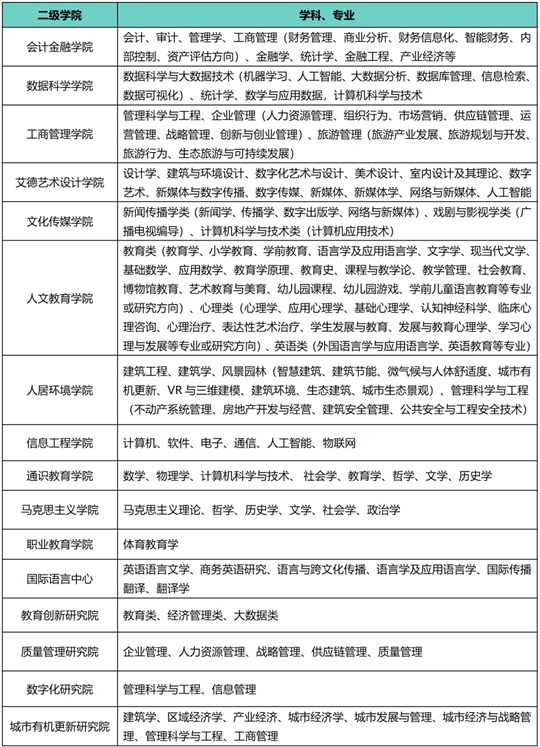 目前共有20000余名在校生,學校下設會計金融學院、數據科學學院、工商管理學院、文化傳媒學院、人文教育學院、艾德藝術設計學院、信息工程學院、人居環境學院、職業教育學院、通識教育學院、馬克思主義學院、國際語言中心等12個教學機構。