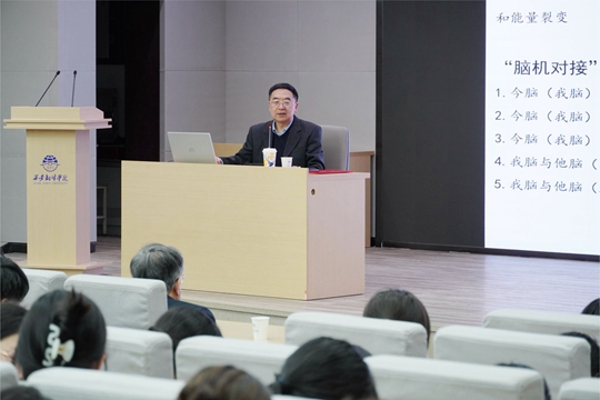 他指出,經典閱讀有三重境界:第一境是“在文本內部完成的充分循環”;第二境是“把這一經典文本置于與其他‘文化經典’的對質中進行理解”;第三境是“將經典置于與‘其他文化’經典的對質中展開理解”。他強調,不同的經典有不同的作用,精讀專業經典可正門徑,博覽百科經典可廣見聞,研讀科學經典可訓練思維,神游古今中外經典可啟迪智慧。他希望同學們能夠以閱讀為基石,不斷豐富自己的內在世界,努力成長為具有獨立思考能力和創新精神的人才。講座歷時兩個多小時。李浩教授旁征博引、以“腦機對接”拓展了文科學習的思路,贏得陣陣掌聲。