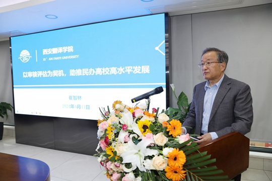 西安翻譯學(xué)院執(zhí)行董事、校長(zhǎng)、陜西省教育考試與評(píng)價(jià)研究會(huì)民辦教育分會(huì)會(huì)長(zhǎng)崔智林致辭并作報(bào)告