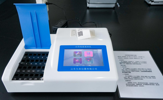 實驗室內(nèi),醫(yī)技系馬麗、劉蕊老師抽取了食堂的豬肉、黃瓜、青菜、香菇等樣品,演示了各種設(shè)備的操作流程,可以在短時間內(nèi)檢測食品中的農(nóng)藥殘留、獸藥殘留、抗生素、污染物、食品添加劑、重金屬等的含量,操作簡便,能夠依靠技術(shù)手段把好原料關(guān)。