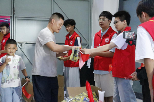 在體育場各入口處的物資分發(fā)點,志愿者們忙碌地為觀眾發(fā)放小紅旗、應(yīng)援棒及雨衣等物品。這些小小的物資迅速點燃了現(xiàn)場熱情,大家揮舞紅旗、吶喊助威,讓國慶的喜慶與足球的激情交相輝映。