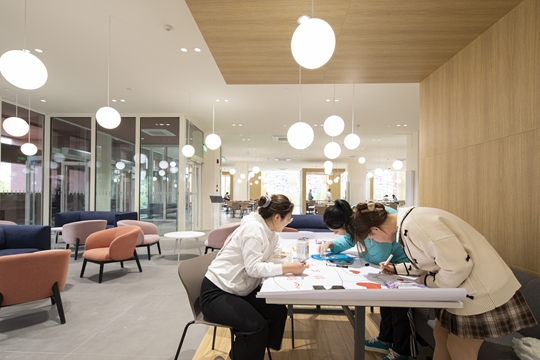 五是,文化與校園環境的協同育人。走進西安歐亞學院校園,如同踏入一座流動的建筑藝術館。在“校園不是簡單的物理空間,而是充滿能量的教育場域”的教育觀指引下,學校將環境建設作為育人的重要載體,從圖書館的開放式空間到教學樓的互動式布局,再到即將投入使用的教育綜合體「春山里」學生公寓和綜合運動場館「和光」文體中心,每一處設計都著眼于激發學生的創造力與協作力。