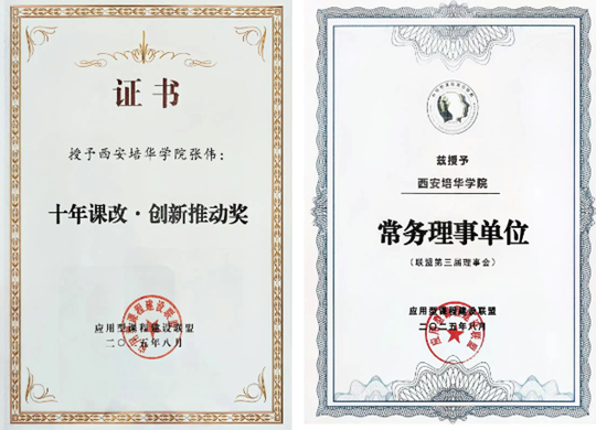 近日,由應用型課程建設聯盟主辦的“應用型課程建設十周年論壇”舉行,西安培華學院智能科學與工程學院教師王淑芳、醫學院教師牛睿參加了應用型課程建設聯盟成立十周年說課競賽,分別斬獲說課競賽一等獎和三等獎。西安培華學院榮獲應用型課程建設聯盟十年課改·先鋒校獎、十年課改·先進團隊獎、十年課改·創新推動獎,并蟬聯第三屆常務理事單位。