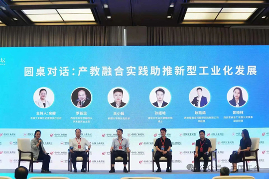 在以“產教融合實踐助推新型工業化發展”為主題的圓周對話環節,西安培華學院副校長羅新遠,新疆大學科技處處長呂小毅,清華大學公共管理學院博士孫拯地,西安智慧谷科技研究院總經理耿凱鴿,西安泵閥總廠有限公司董事、副總經理曾曉林,圍繞產教融合如何更好地服務新型工業化發展這一核心問題,結合各自領域的實踐經驗,從人才培養模式創新、科研成果轉化、校企合作機制構建等方面展開深入交流。