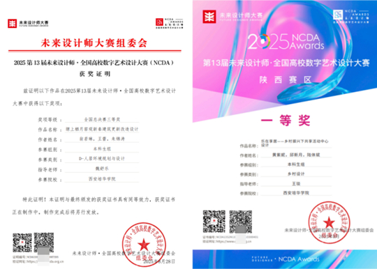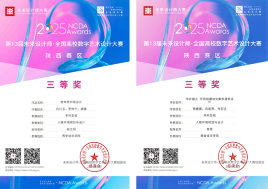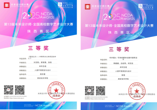 近日,第13屆未來設計師・全國高校數字藝術設計大賽(NCDA)省賽圓滿結束。西安培華學院建筑學專業學生表現突出,共獲國家級三等獎1項、省級一等獎2項、省級三等獎5項,充分展現了培華學生扎實的專業基礎與出色的創新能力。