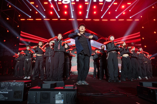 本屆迎新晚會以“High-Five”為主題,以“擊掌”為線索,串聯起新生與校園之間的情感共鳴。整場晚會分為“Hey!新面孔!”“Wow!超有料!”“Up!青春力!”“Go!High-Five!”四個篇章,將節目創意、舞臺效果與學校“四位一體雙院制”育人理念巧妙融合。明快的色彩隨擊掌互動流轉,絢麗的燈光與旋律交織躍動,為現場觀眾帶來了一場沉浸式的青春體驗。