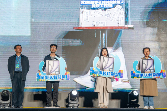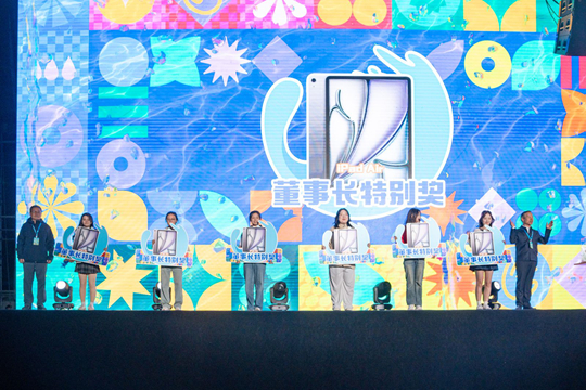 在熱烈的氛圍中,現場師生翹首以盼的“董事長特別獎”“董事長特別大獎”抽獎環節來襲,學校常務副校長胡繼連從符合條件的教職工中抽出3名“董事長特別獎 教師序列”,他們分別獲得iPad Air一臺。學校黨委書記張存偉、校長姬宇從符合條件的學生中抽出6名“董事長特別獎 學生序列”,他們分別獲得iPad Air一臺。張書記和姬校長從符合條件的學生中抽出今晚的2名壓軸大獎,“董事長特別大獎”,他們的獎品是包含iPhone 17 Pro Max、Apple Watch Series 11、AirPods Pro 3三件套的豪華Apple大禮包一份。