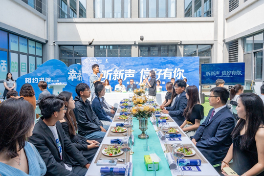 長桌鋪開,青瓷餐具映著光影,鋼琴曲《午后的旅行》緩緩流淌。交流環節中,老師們以輕松自然的方式,與新生們探討成長與幸福的多重維度。