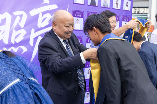 活動伊始,校領導們逐一為新生佩戴上象征成長與初心的榮譽綬帶。綬帶垂肩,不僅是學院院徽中卓越精神的體現,更是對學子們未來“追求卓越”的無聲期許。
