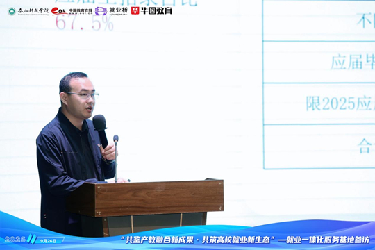 研討會上,行業專家與高校代表輪番分享前沿觀點與實踐經驗。中國教育在線就業橋數據分析專家王海玉以“高校‘就業——招生——培養’聯動機制的數據構建”為主題作專題報告,通過詳實的數據與清晰的邏輯,為高校厘清數智化時代下三大環節的聯動路徑,提供了可落地的數據賦能工具與系統解決方案。