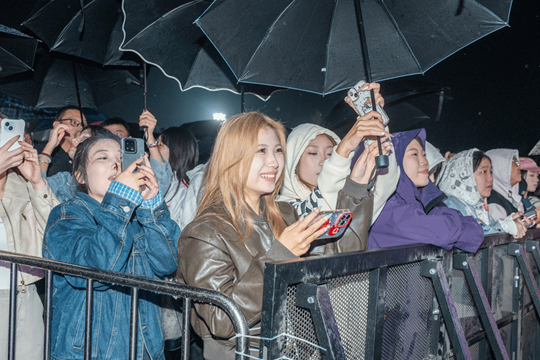 2025烏馬河·校園搖滾音樂節(jié)延續(xù)了專業(yè)級演出標準,主舞臺配備頂級音響與燈光系統(tǒng),為每一支樂隊提供完美的發(fā)聲場域。從“High-Five”迎新晚會炸裂開場,到多個專場演出接力熱浪,烏馬河畔持續(xù)回蕩著電吉他撕裂長空的聲響與鼓點擊穿心跳的節(jié)奏。盡管演出期間偶有細雨飄灑,卻絲毫未減現(xiàn)場熾熱氣氛。舞臺上,樂隊成員在雨中盡情揮灑激情,雨水與汗水交織;臺下,樂迷身穿雨衣,用吶喊與合唱回應(yīng)每一個音符。底特綠樂隊充滿張力的演繹,波瀾壯闊的童話樂隊感染全場的舞臺表現(xiàn),犬儒樂隊叩擊心靈的詞曲創(chuàng)作,以及陳碩子等人氣音樂人的深情獻聲,多元音樂風格在此碰撞交融,掀起一波又一波音浪高潮。
