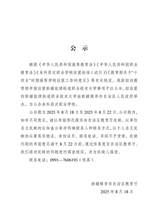 新疆?dāng)M設(shè)置新疆能源鐵道職業(yè)技術(shù)大學(xué)