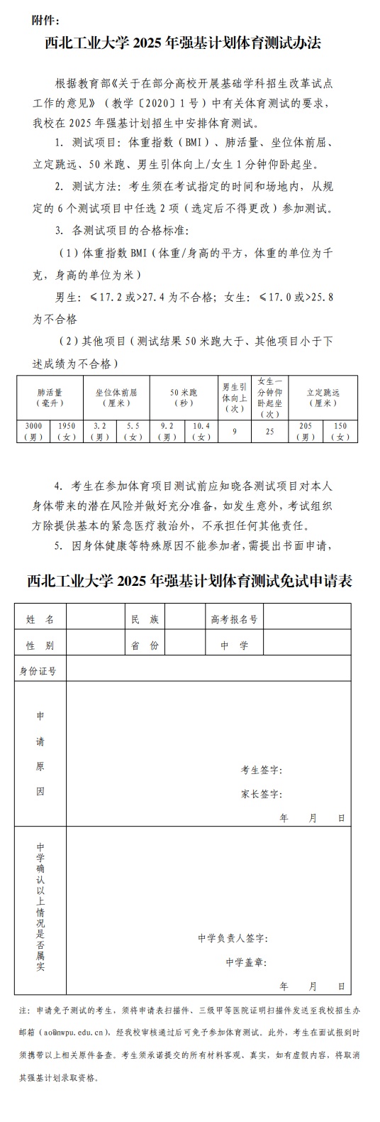 附件:西北工業(yè)大學2025年強基計劃體質測試辦法(點擊查看)