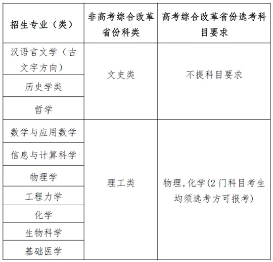 為全面貫徹全國教育大會精神,深入落實《國務院關于深化考試招生制度改革的實施意見》(國發〔2014〕35號)、教育部《關于在部分高校開展基礎學科招生改革試點工作的意見》(教學〔2020〕1號)等文件精神,服務國家重大戰略需求,加強基礎學科拔尖創新人才選拔培養,四川大學2025年繼續開展基礎學科招生改革試點(以下簡稱強基計劃),選拔一批有志向、有興趣、有天賦的青年學生進行專門培養,為國家基礎學科和重大戰略領域輸送后備人才。