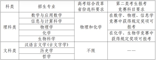 各省(區(qū)、市)符合2025年普通高等學(xué)校招生全國(guó)統(tǒng)一考試報(bào)名條件,具有強(qiáng)烈的專業(yè)興趣,綜合素質(zhì)優(yōu)秀,基礎(chǔ)學(xué)科拔尖,并有志于將來從事相關(guān)領(lǐng)域科學(xué)技術(shù)工作的學(xué)生。申請(qǐng)報(bào)名考生分為以下兩類:
