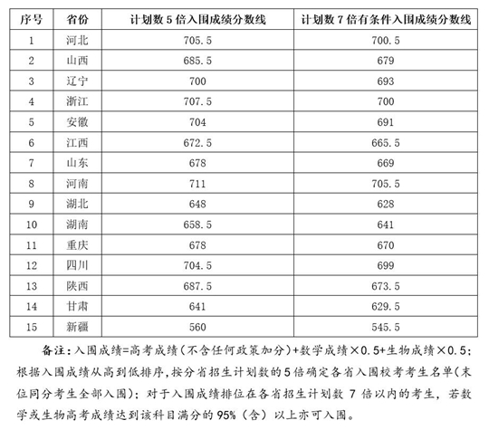 根據教育部相關文件和西北農林科技大學2025年強基計劃招生簡章要求,按照相關省份確認參加校考考生的高考成績情況,確定我校2025年強基計劃招生校考入圍分數線,現公布如下: