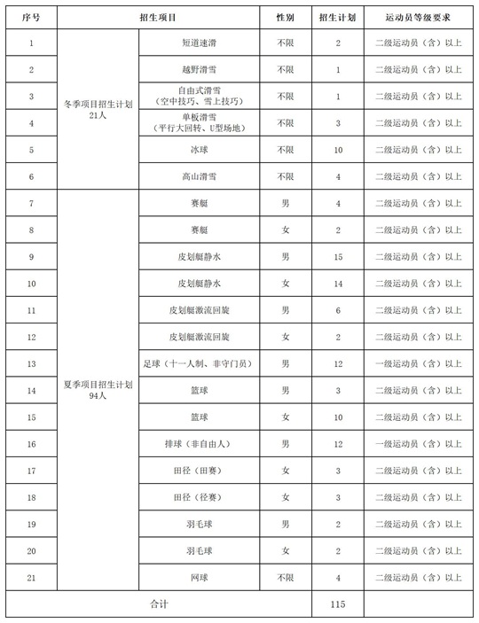 2025年擬定招生115人,最終計(jì)劃數(shù)以國(guó)家體育總局審批公布為準(zhǔn)。
