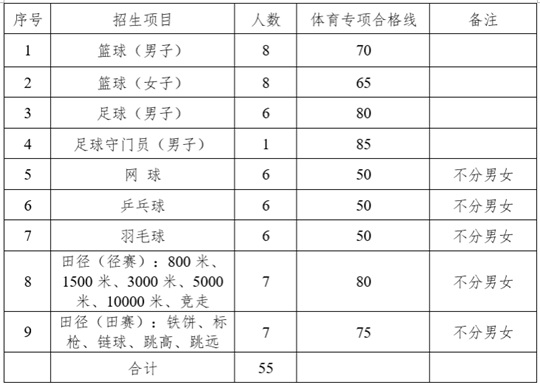 (一)招生項目:籃球、男子足球(十一人制)、網球、乒乓球、羽毛球、田徑。