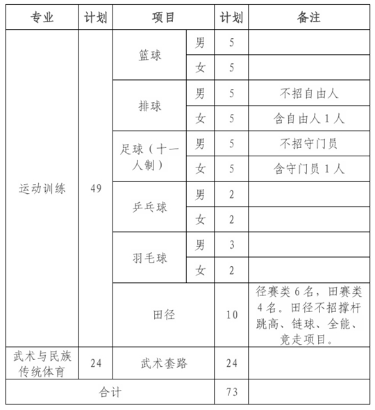 (三)考生如已報名運動訓練、武術與民族傳統體育專業志愿并被錄取,不得放棄錄取資格,入學后不得轉入其他專業學習。
