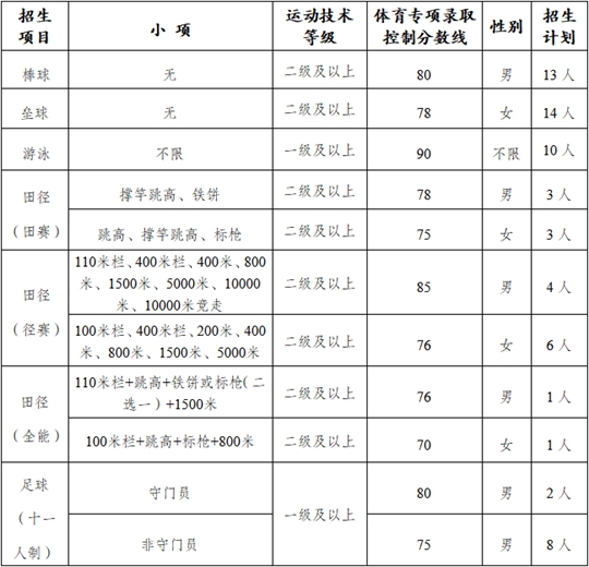 我校依據國家體育總局、教育部相關文件規定及考生實際情況確定文化成績與體育專項成績最低控制分數線。