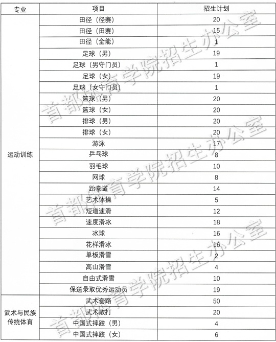 | 首都體育學(xué)院2025年運動訓(xùn)練、武術(shù)與民族傳統(tǒng)體育專業(yè)分項目招生計劃 |