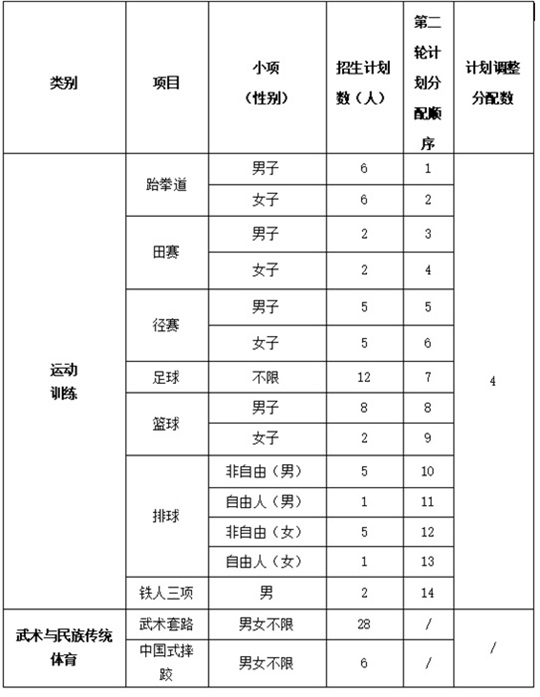 3.運動訓練專業和武術與民族傳統體育專業之間不進行計劃調整。