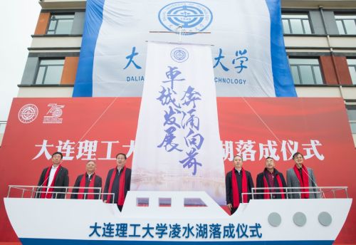 4月15日,在學校第75個建校日,凌水湖落成儀式舉行。校黨委書記項昌樂、校長賈振元為湖名石揭幕,并與校友代表董長海、潘曉華、安玉杰、李榮照一同拉起象征大工夢想之船的風帆,與廣大師生校友共同見證凌水湖落成。