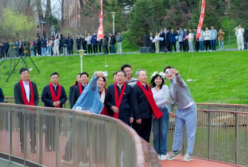 在落成儀式前,凌水湖上上演“連理·青春”主題快閃。阿卡貝拉合唱團、漢服社、大工力量電聲樂團、德惠武術協會等學生社團的同學們,在粼粼波光中綻放青春活力、展現青年力量,用多姿多彩的興趣特長和藝術表演慶祝建校75周年。