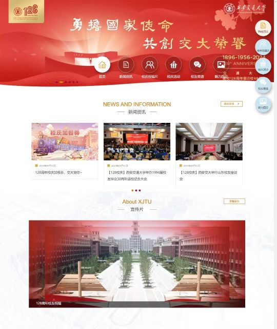 在128校慶之際,西安交通大學(xué)推出128周年校慶專題網(wǎng)站,為廣大校友、師生和社會各界提供了一個(gè)全面、實(shí)時(shí)了解校慶活動的信息平臺。在黨、校辦,黨委宣傳部、校友部和網(wǎng)絡(luò)信息中心的共同協(xié)作下,已正式上線。