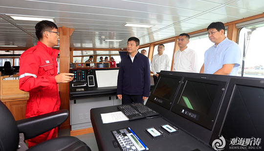 李明書記考察“東方紅3”船駕駛艙