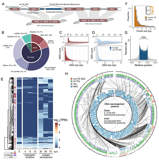 圖1.扇形游仆蟲生殖系基因組特征