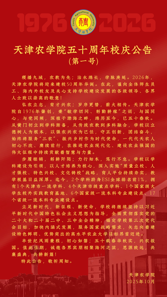 天津農(nóng)學院五十周年校慶公告(第一號)