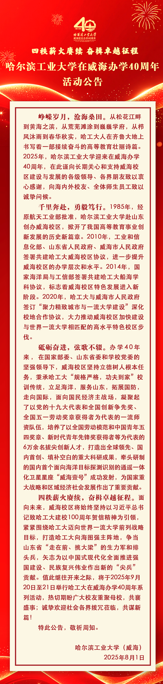 四秩薪火賡續(xù) 奮楫卓越征程︱哈爾濱工業(yè)大學在威海辦學40周年活動公告