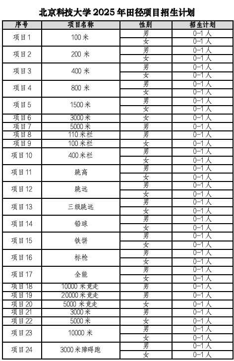 | 2025年北京科技大學高水平運動隊招生簡章 |
