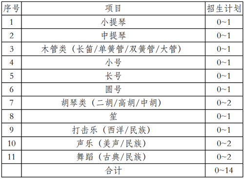 根據(jù)我校藝術(shù)團(tuán)建設(shè)和發(fā)展需要,按照“擇優(yōu)錄取、寧缺毋濫”的原則,設(shè)定2023年高水平藝術(shù)團(tuán)招生計(jì)劃不超過(guò)14人。具體計(jì)劃如下: