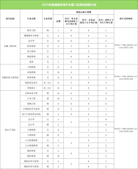 | 安徽省2025年普通高校專升本第二輪調劑志愿填報即將開始 |