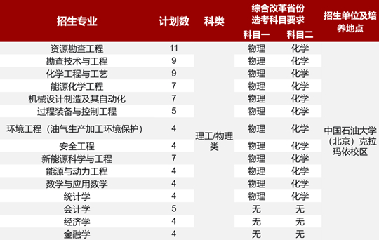 中國石油大學(北京)克拉瑪依校區(以下簡稱“校區”)為招生單位和培養地點,面向全國實施高校專項計劃的省份招生。