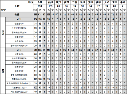 (2)報考司法警察類專業考生必須在福建報名并參加高考,戶籍不限,為高級中等教育學校畢業。