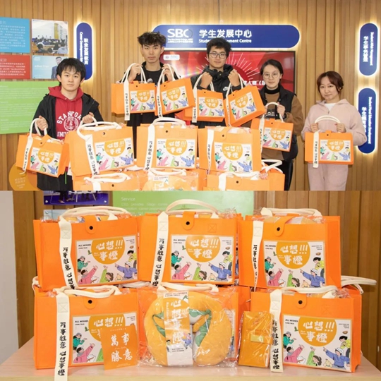 輔導員老師們精心準備了“橙”意滿滿的“考研暖心禮包”,為每一位奮力備戰的考研學子送上了貼心禮物。禮包中的每一件禮物都蘊含著暖心寓意:橙色文具套裝,象征著“金榜題名”的美好愿景;“心想事成”筆記本,則寄托了老師對同學們心愿達成的誠摯祝愿;舒適的U型枕,則能為考研學子們的備考之戰增添一抹溫馨與愜意。