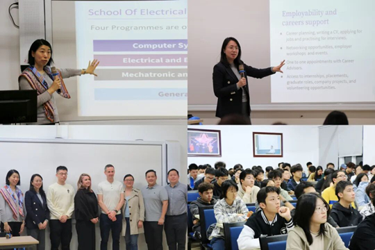 此前,10月23日晚,謝菲爾德大學電子與電氣工程學院褚曉理教授、管理學院尹淑興教授作升學專題講座,國際招生高級經理Miriam Brown,本科招生主管Dave Broomby,中國項目經理、全球合作事務負責人唐煜煜,以及100余名學生到場聆聽。