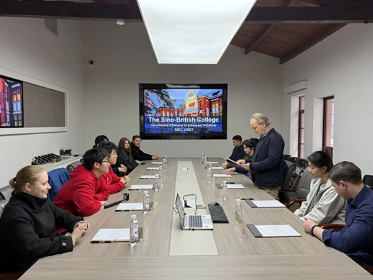 參訪第一站來到復(fù)興路校區(qū)具有百年歷史的鐘樓,這座建筑現(xiàn)為上海理工大學(xué)復(fù)興路校區(qū)的校史館。在館內(nèi)會議室,中英國際學(xué)院教師James Leggate為師生作了學(xué)院基本情況介紹,系統(tǒng)闡述了學(xué)院辦學(xué)特色,并詳細介紹了學(xué)院獨特的課程體系。通過講解與交流,國際學(xué)生了解到學(xué)校自2006年以來與英國高校開展合作辦學(xué),共同創(chuàng)辦了中英國際學(xué)院。學(xué)院的“一對多”合作辦學(xué)模式、創(chuàng)新人才培養(yǎng)理念以及計劃內(nèi)雙學(xué)位項目(即同時獲得上海理工大學(xué)學(xué)位與英方合作院校學(xué)位)為學(xué)生們帶來了獨特優(yōu)勢。互動環(huán)節(jié)中,同學(xué)們針對課程設(shè)置與學(xué)習(xí)體驗積極提問,James均作了詳細解答。一名漢語言生表示,James老師的講解讓他對中英國際學(xué)院的學(xué)習(xí)生活產(chǎn)生了濃厚興趣。