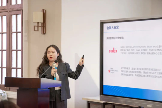 作為新入職年輕員工代表,米蘭國際家具展項目組駱婷婷以“從校園到職場的思維突圍”為主題,講述了初入職場時自己因受限學生思維而面臨的挑戰。她呼吁同學們“打破沉默,大膽發聲”,“不要等待領導布置作業,要主動提出自己的想法”,將校園中的理論知識與職場實踐靈活結合。