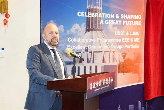 倪克·斯莫在發言中對學校的熱情接待表示衷心感謝,并回顧上海與利物浦締結姐妹城市26周年來的合作成果。他表示,15年前利物浦參加上海世博會,彰顯了兩市的深厚友誼和緊密合作。展望未來,他期待進一步拓展中英兩國高校合作、科研共建及高層次合作辦學項目,推動中英合作辦學高質量發展,進一步加深中英兩國文化理解與交流,并持續深化合作,助力上海市與利物浦市務實合作不斷提質升級。